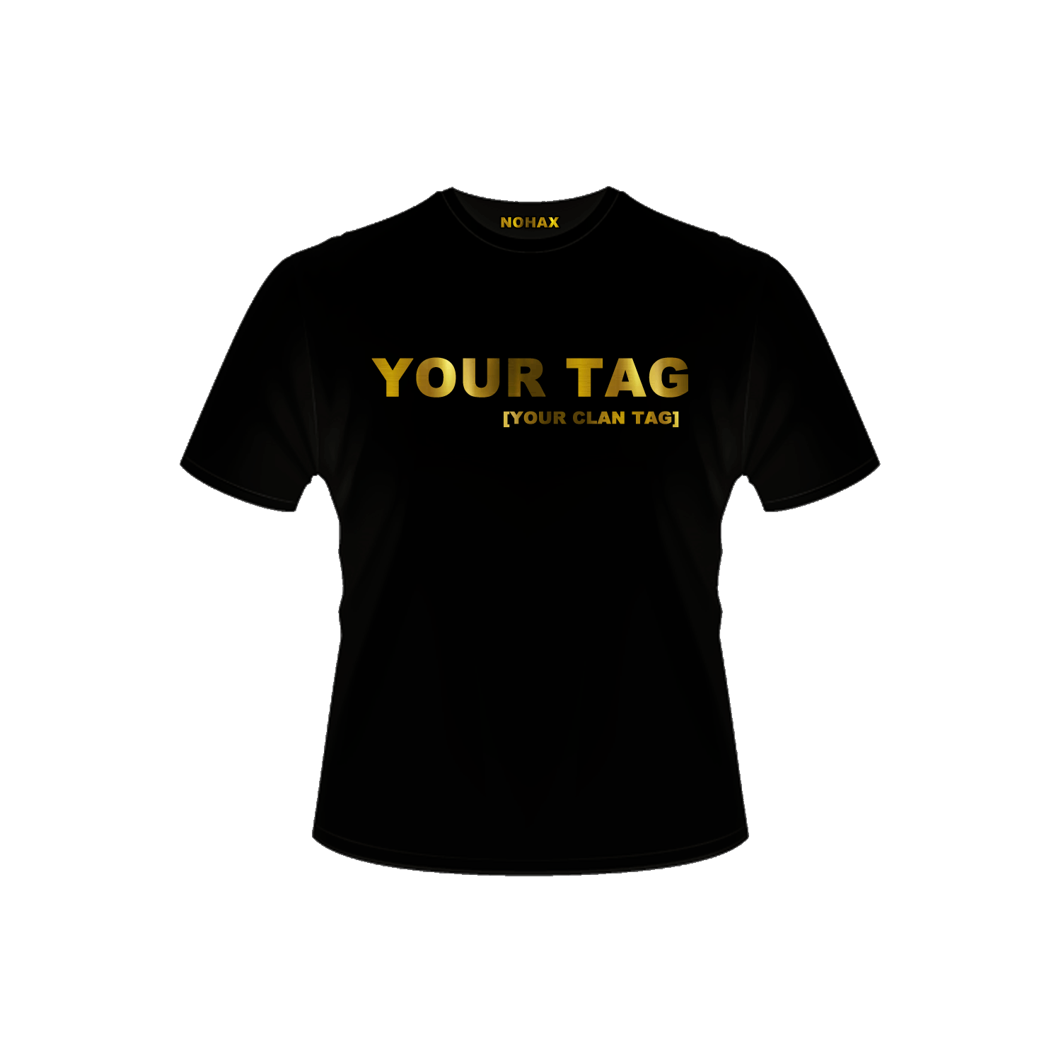 Stay out of the Gulag with your own customized Tag & Clan NOHAX Gold Foil T-Shirt.