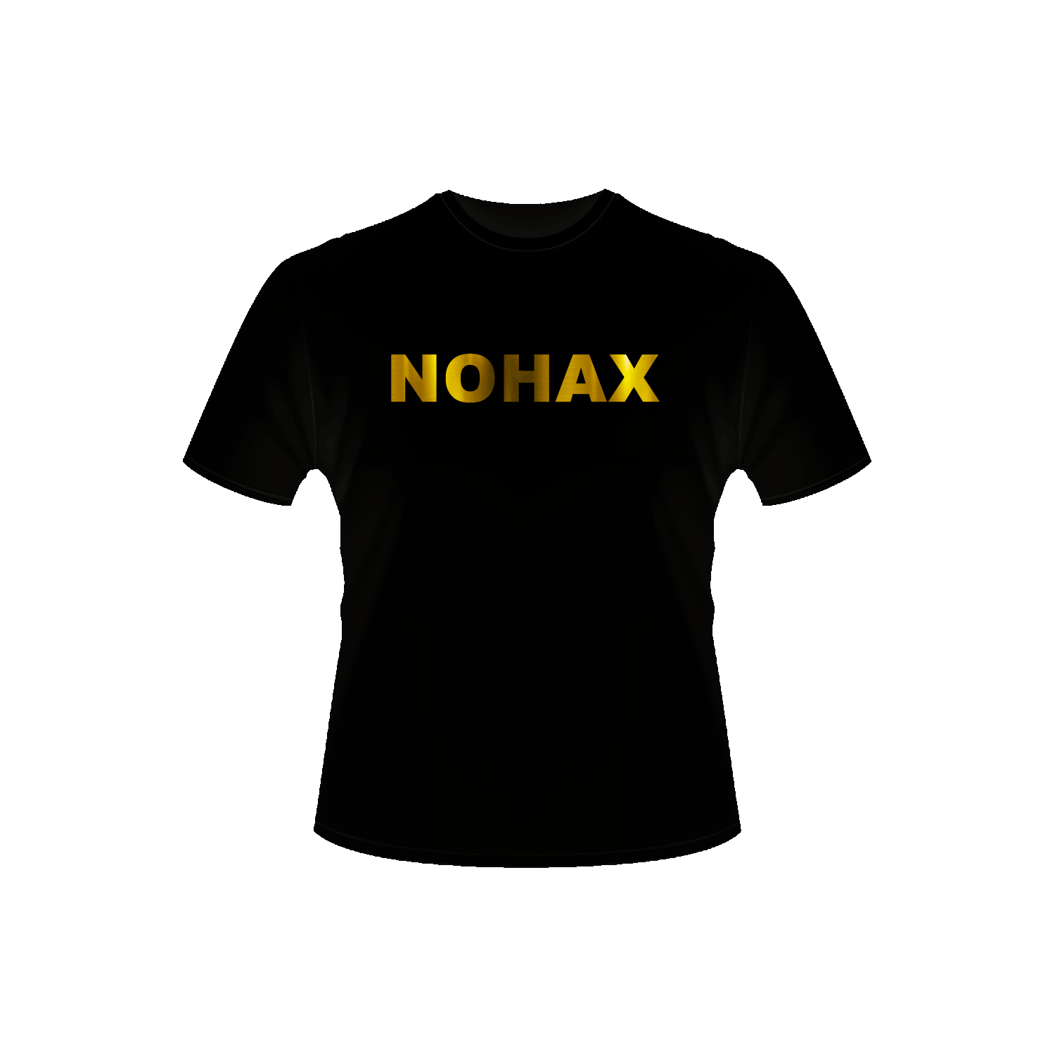 Stay out of the Gulag and advocate for free and fair online multiplayer gaming with this schweet NOHAX Gold Foil Black T-Shirt.